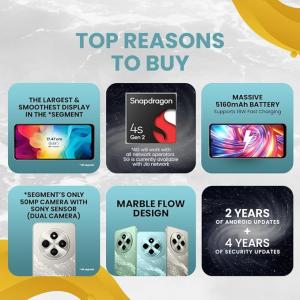 📱 Display: 6.88″ HD+ IPS LCD, 120Hz Refresh Rate, TÜV Certified ⚙️ Processor: Snapdragon 4s Gen 2 (4nm), Octa-Core – Budget Gaming + 5G Ready 🔋 Battery: 5160 mAh with 18W Fast Charging – 21 Days Standby 📷 Cameras: